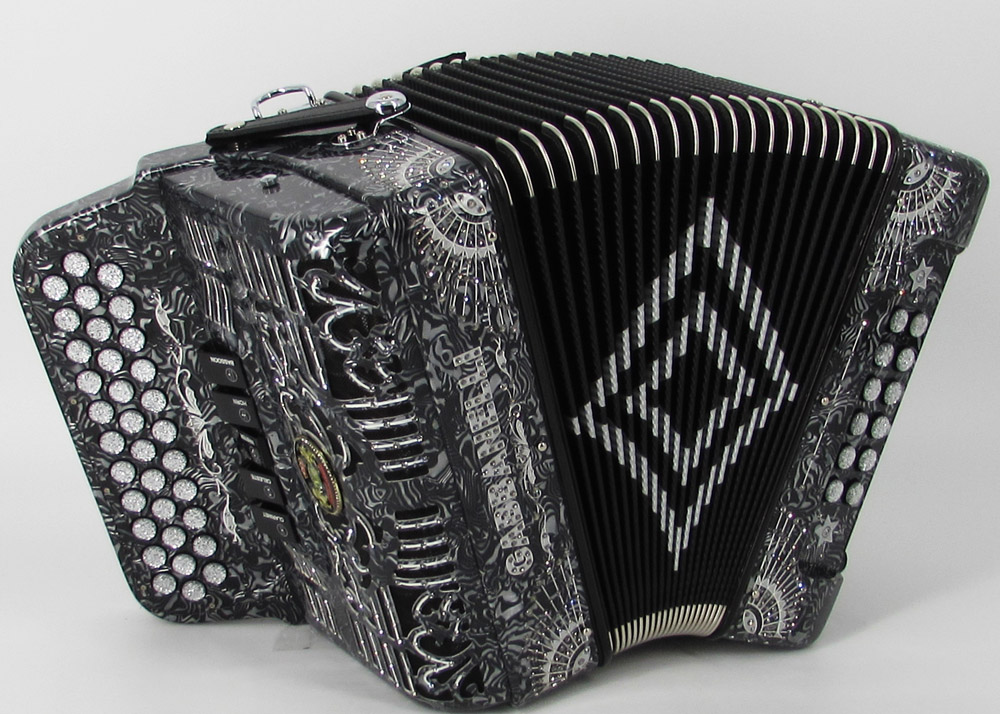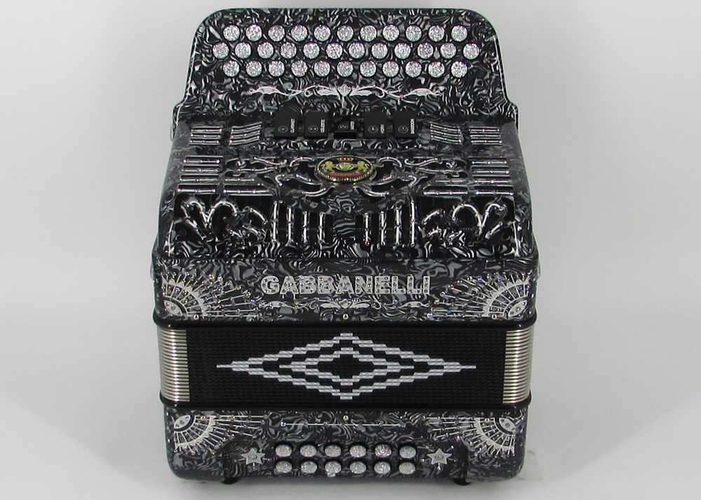 El distintivo acordeón Gabbanelli tamaño super compacto de 5 registros. Produce un sonido profundo que sólo puede lograrse gracias a que es elaborado a mano, con los más elevados estándares de materiales y ensamblado con voces de la mejor calidad. Los acordeones Gabbanelli que tenemos actualmente en nuestro catálogo son los instrumentos más refinados en el mercado y son el resultado de nuestro gran conocimiento y colaboración continua desde 1961 con los mejores acordeonistas. Esta obra maestra es producto del desarrollo de Acordeones Gabbanelli a lo largo de varias décadas y de un trabajo artesanal hecho por expertos italianos que han sido seleccionados para cumplir nuestros parámetros de excelencia. El Modelo 400- 34 Botones – 5 registros incluye estuche, correas y garantía. Los bajos están disponibles bajo pedido especial y por un costo adicional.
