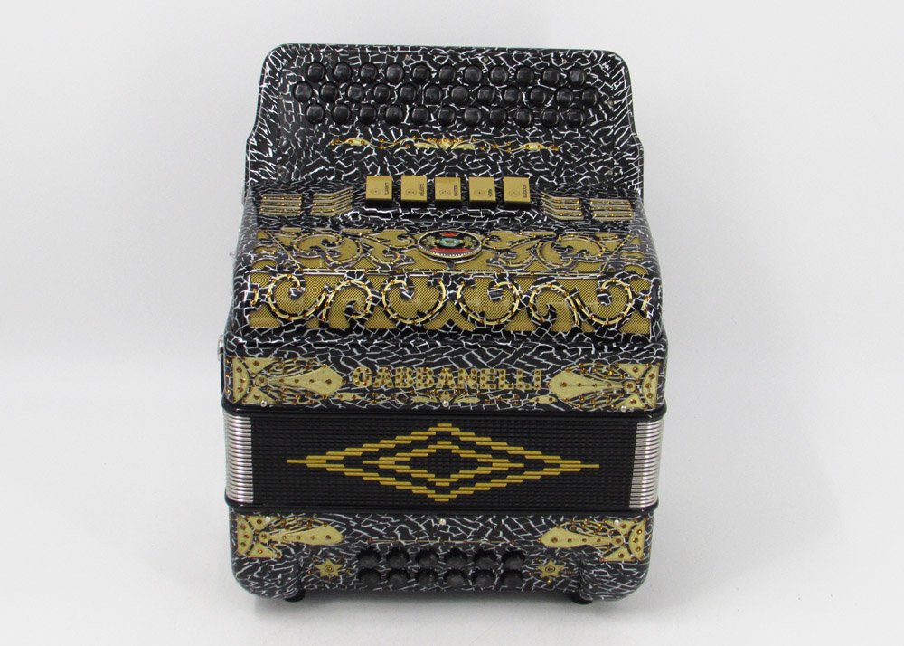 El distintivo acordeón Gabbanelli tamaño super compacto de 5 registros. Produce un sonido profundo que sólo puede lograrse gracias a que es elaborado a mano, con los más elevados estándares de materiales y ensamblado con voces de la mejor calidad. Los acordeones Gabbanelli que tenemos actualmente en nuestro catálogo son los instrumentos más refinados en el mercado y son el resultado de nuestro gran conocimiento y colaboración continua desde 1961 con los mejores acordeonistas. Esta obra maestra es producto del desarrollo de Acordeones Gabbanelli a lo largo de varias décadas y de un trabajo artesanal hecho por expertos italianos que han sido seleccionados para cumplir nuestros parámetros de excelencia. El Modelo 400- 34 Botones – 5 registros incluye estuche, correas y garantía. Los bajos están disponibles bajo pedido especial y por un costo adicional.