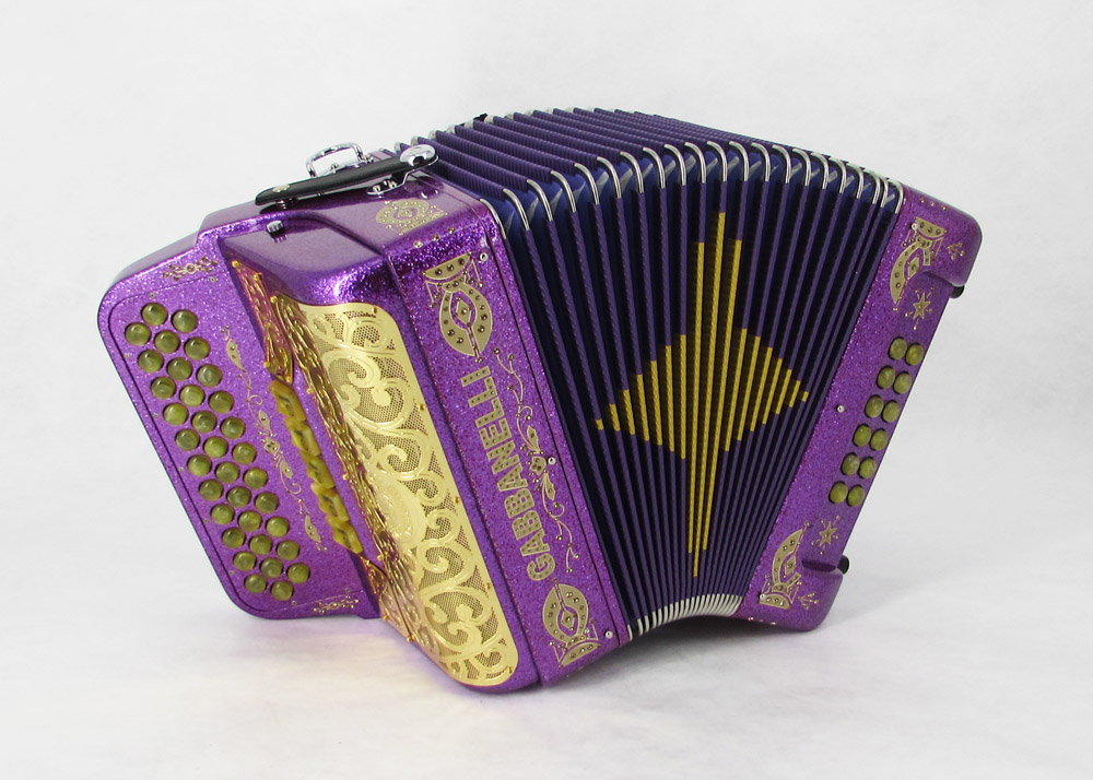 El distintivo acordeón Gabbanelli tamaño super compacto de 5 registros. Produce un sonido profundo que sólo puede lograrse gracias a que es elaborado a mano, con los más elevados estándares de materiales y ensamblado con voces de la mejor calidad. Los acordeones Gabbanelli que tenemos actualmente en nuestro catálogo son los instrumentos más refinados en el mercado y son el resultado de nuestro gran conocimiento y colaboración continua desde 1961 con los mejores acordeonistas. Esta obra maestra es producto del desarrollo de Acordeones Gabbanelli a lo largo de varias décadas y de un trabajo artesanal hecho por expertos italianos que han sido seleccionados para cumplir nuestros parámetros de excelencia. El Modelo 400- 34 Botones – 5 registros incluye estuche, correas y garantía. Los bajos están disponibles bajo pedido especial y por un costo adicional.