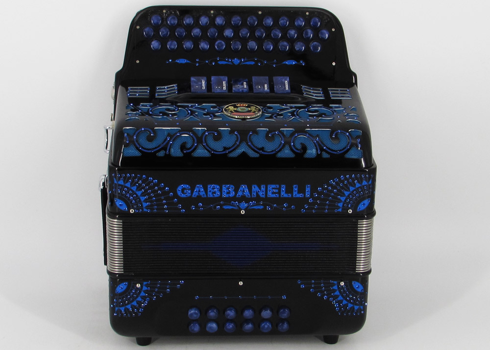 El distintivo acordeón Gabbanelli tamaño super compacto de 5 registros. Produce un sonido profundo que sólo puede lograrse gracias a que es elaborado a mano, con los más elevados estándares de materiales y ensamblado con voces de la mejor calidad. Los acordeones Gabbanelli que tenemos actualmente en nuestro catálogo son los instrumentos más refinados en el mercado y son el resultado de nuestro gran conocimiento y colaboración continua desde 1961 con los mejores acordeonistas. Esta obra maestra es producto del desarrollo de Acordeones Gabbanelli a lo largo de varias décadas y de un trabajo artesanal hecho por expertos italianos que han sido seleccionados para cumplir nuestros parámetros de excelencia. El Modelo 400- 34 Botones – 5 registros incluye estuche, correas y garantía. Los bajos están disponibles bajo pedido especial y por un costo adicional.