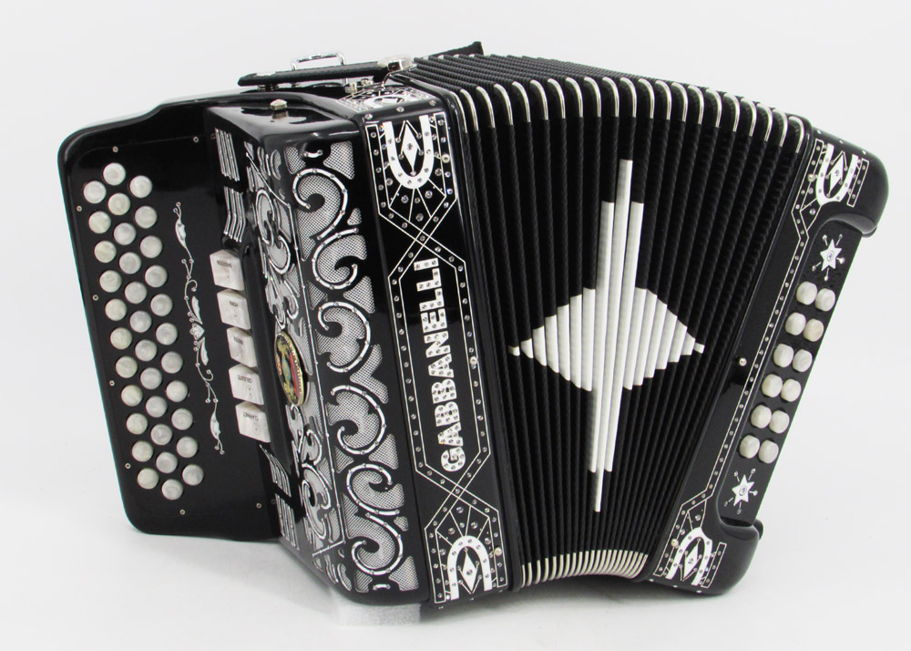 El distintivo acordeón Gabbanelli tamaño super compacto de 5 registros. Produce un sonido profundo que sólo puede lograrse gracias a que es elaborado a mano, con los más elevados estándares de materiales y ensamblado con voces de la mejor calidad. Los acordeones Gabbanelli que tenemos actualmente en nuestro catálogo son los instrumentos más refinados en el mercado y son el resultado de nuestro gran conocimiento y colaboración continua desde 1961 con los mejores acordeonistas. Esta obra maestra es producto del desarrollo de Acordeones Gabbanelli a lo largo de varias décadas y de un trabajo artesanal hecho por expertos italianos que han sido seleccionados para cumplir nuestros parámetros de excelencia. El Modelo 400- 34 Botones – 5 registros incluye estuche, correas y garantía. Los bajos están disponibles bajo pedido especial y por un costo adicional.