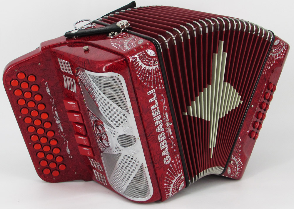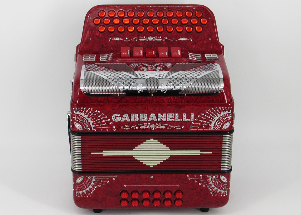 El distintivo acordeón Gabbanelli tamaño super compacto de 5 registros. Produce un sonido profundo que sólo puede lograrse gracias a que es elaborado a mano, con los más elevados estándares de materiales y ensamblado con voces de la mejor calidad. Los acordeones Gabbanelli que tenemos actualmente en nuestro catálogo son los instrumentos más refinados en el mercado y son el resultado de nuestro gran conocimiento y colaboración continua desde 1961 con los mejores acordeonistas. Esta obra maestra es producto del desarrollo de Acordeones Gabbanelli a lo largo de varias décadas y de un trabajo artesanal hecho por expertos italianos que han sido seleccionados para cumplir nuestros parámetros de excelencia. El Modelo 400- 34 Botones – 5 registros incluye estuche, correas y garantía. Los bajos están disponibles bajo pedido especial y por un costo adicional.