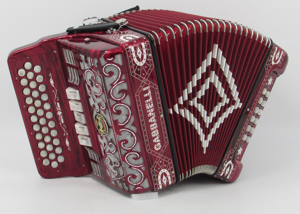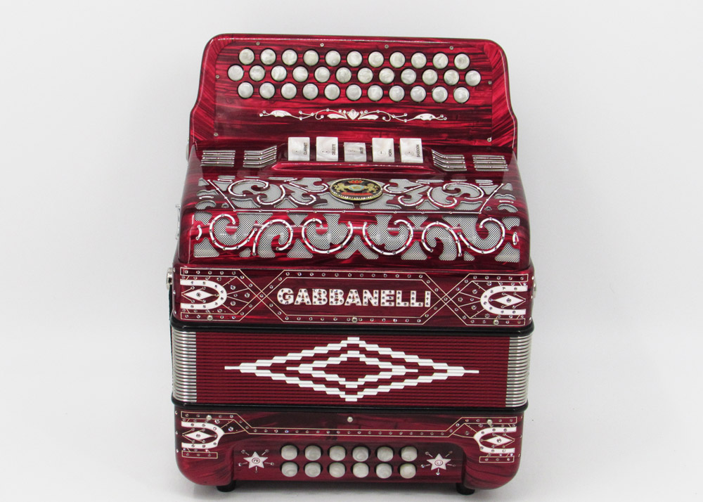 El distintivo acordeón Gabbanelli tamaño super compacto de 5 registros. Produce un sonido profundo que sólo puede lograrse gracias a que es elaborado a mano, con los más elevados estándares de materiales y ensamblado con voces de la mejor calidad. Los acordeones Gabbanelli que tenemos actualmente en nuestro catálogo son los instrumentos más refinados en el mercado y son el resultado de nuestro gran conocimiento y colaboración continua desde 1961 con los mejores acordeonistas. Esta obra maestra es producto del desarrollo de Acordeones Gabbanelli a lo largo de varias décadas y de un trabajo artesanal hecho por expertos italianos que han sido seleccionados para cumplir nuestros parámetros de excelencia. El Modelo 400- 34 Botones – 5 registros incluye estuche, correas y garantía. Los bajos están disponibles bajo pedido especial y por un costo adicional.