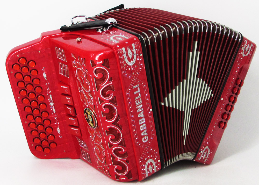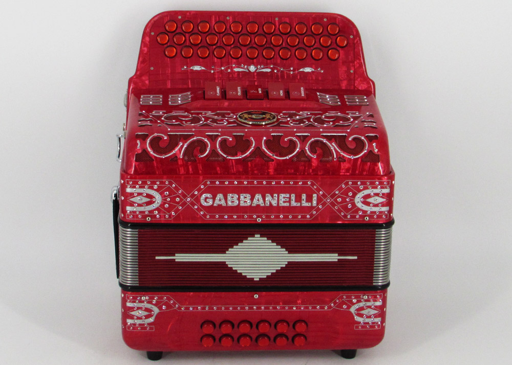 El distintivo acordeón Gabbanelli tamaño super compacto de 5 registros. Produce un sonido profundo que sólo puede lograrse gracias a que es elaborado a mano, con los más elevados estándares de materiales y ensamblado con voces de la mejor calidad. Los acordeones Gabbanelli que tenemos actualmente en nuestro catálogo son los instrumentos más refinados en el mercado y son el resultado de nuestro gran conocimiento y colaboración continua desde 1961 con los mejores acordeonistas. Esta obra maestra es producto del desarrollo de Acordeones Gabbanelli a lo largo de varias décadas y de un trabajo artesanal hecho por expertos italianos que han sido seleccionados para cumplir nuestros parámetros de excelencia. El Modelo 400- 34 Botones – 5 registros incluye estuche, correas y garantía. Los bajos están disponibles bajo pedido especial y por un costo adicional.