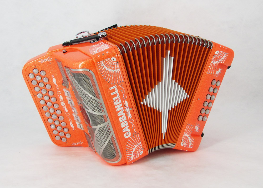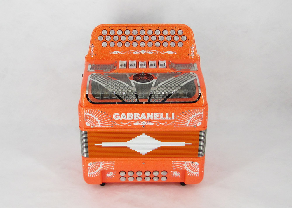 El distintivo acordeón Gabbanelli tamaño super compacto de 5 registros. Produce un sonido profundo que sólo puede lograrse gracias a que es elaborado a mano, con los más elevados estándares de materiales y ensamblado con voces de la mejor calidad. Los acordeones Gabbanelli que tenemos actualmente en nuestro catálogo son los instrumentos más refinados en el mercado y son el resultado de nuestro gran conocimiento y colaboración continua desde 1961 con los mejores acordeonistas. Esta obra maestra es producto del desarrollo de Acordeones Gabbanelli a lo largo de varias décadas y de un trabajo artesanal hecho por expertos italianos que han sido seleccionados para cumplir nuestros parámetros de excelencia. El Modelo 400- 34 Botones – 5 registros incluye estuche, correas y garantía. Los bajos están disponibles bajo pedido especial y por un costo adicional.
