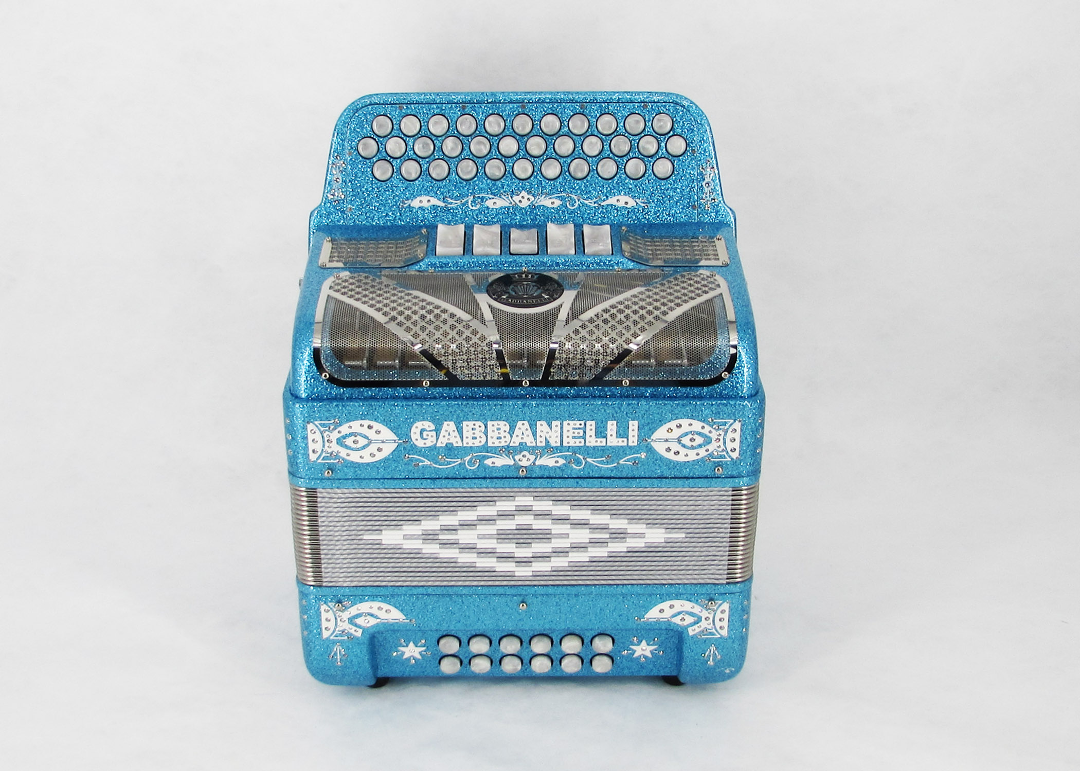 El distintivo acordeón Gabbanelli tamaño super compacto de 5 registros. Produce un sonido profundo que sólo puede lograrse gracias a que es elaborado a mano, con los más elevados estándares de materiales y ensamblado con voces de la mejor calidad. Los acordeones Gabbanelli que tenemos actualmente en nuestro catálogo son los instrumentos más refinados en el mercado y son el resultado de nuestro gran conocimiento y colaboración continua desde 1961 con los mejores acordeonistas. Esta obra maestra es producto del desarrollo de Acordeones Gabbanelli a lo largo de varias décadas y de un trabajo artesanal hecho por expertos italianos que han sido seleccionados para cumplir nuestros parámetros de excelencia. El Modelo 400- 34 Botones – 5 registros incluye estuche, correas y garantía. Los bajos están disponibles bajo pedido especial y por un costo adicional.
