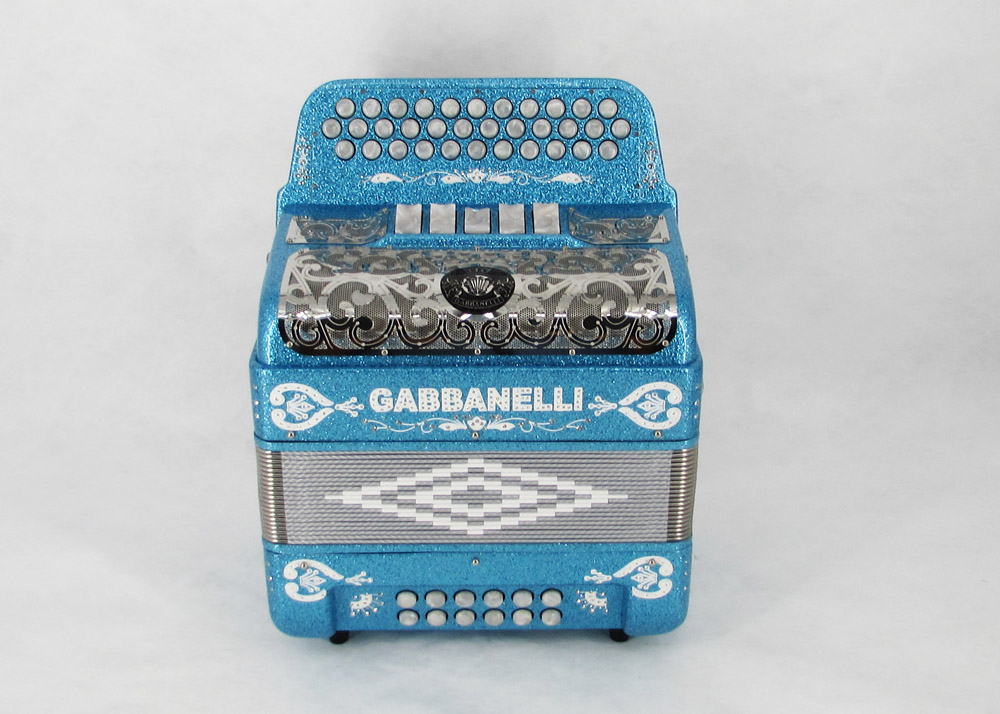El distintivo acordeón Gabbanelli tamaño super compacto de 5 registros. Produce un sonido profundo que sólo puede lograrse gracias a que es elaborado a mano, con los más elevados estándares de materiales y ensamblado con voces de la mejor calidad. Los acordeones Gabbanelli que tenemos actualmente en nuestro catálogo son los instrumentos más refinados en el mercado y son el resultado de nuestro gran conocimiento y colaboración continua desde 1961 con los mejores acordeonistas. Esta obra maestra es producto del desarrollo de Acordeones Gabbanelli a lo largo de varias décadas y de un trabajo artesanal hecho por expertos italianos que han sido seleccionados para cumplir nuestros parámetros de excelencia. El Modelo 400- 34 Botones – 5 registros incluye estuche, correas y garantía. Los bajos están disponibles bajo pedido especial y por un costo adicional.