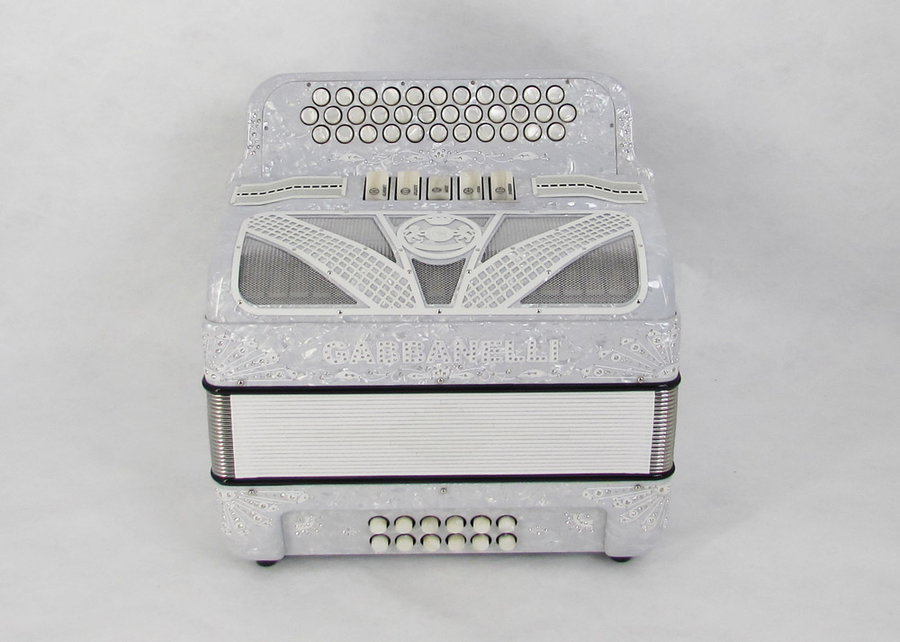 Modelo 400- 34 Botones – 5 registros de sonido y tamaño Original. Los bajos están disponibles bajo pedido especial y por un costo adicional.