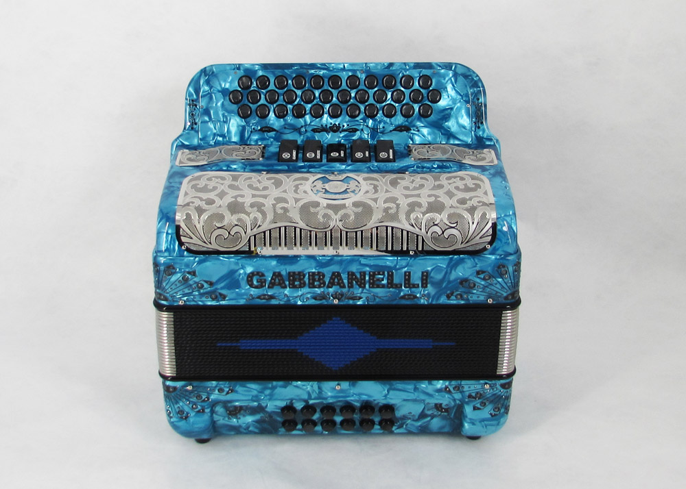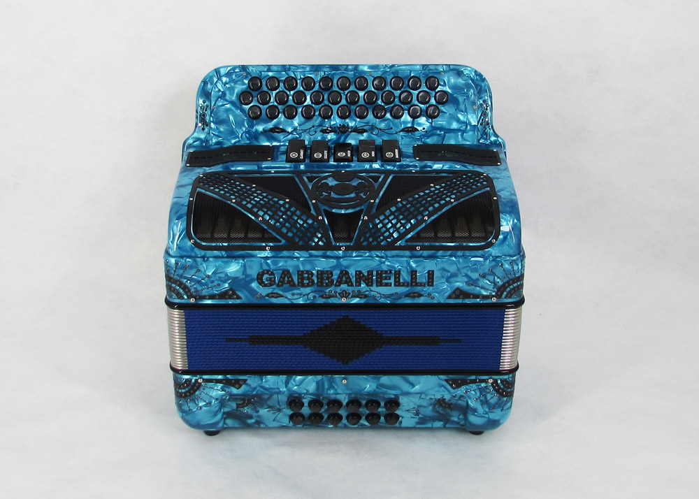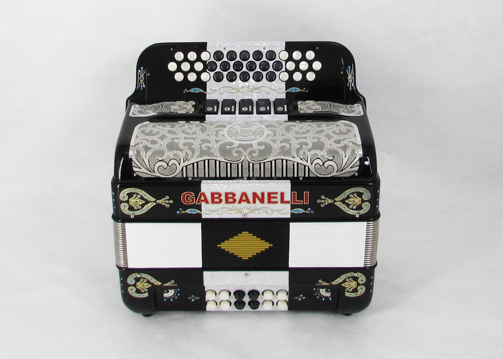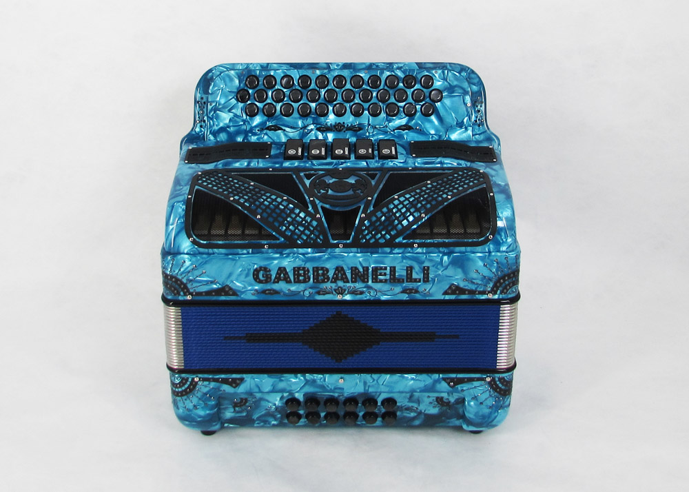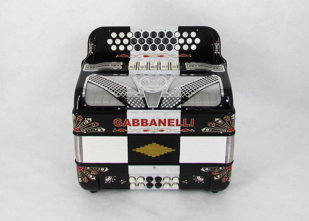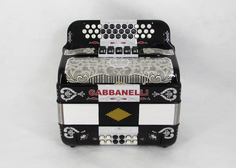 Modelo 400- 34 Botones – 5 registros de sonido y tamaño Original. Los bajos están disponibles bajo pedido especial y por un costo adicional.